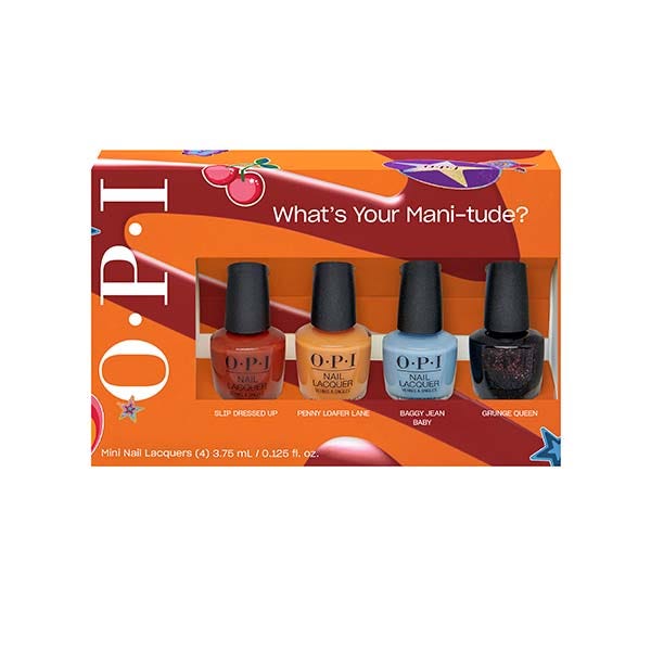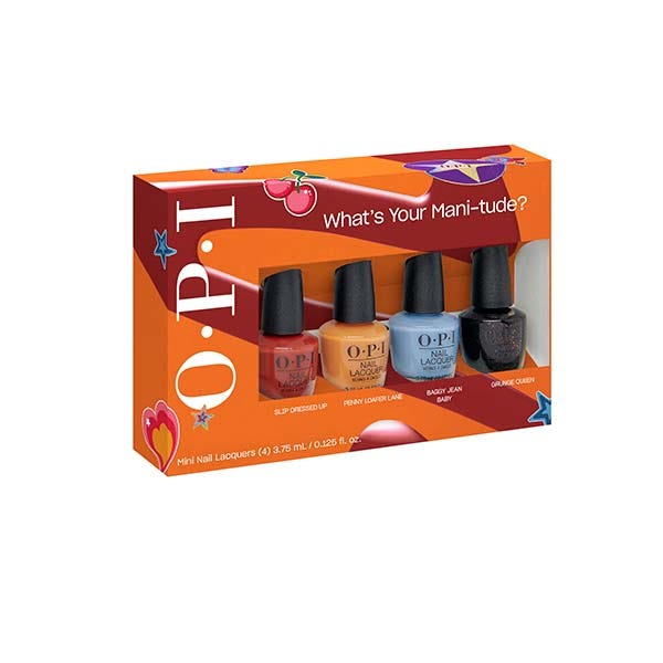 Este mini set de esmaltes es el starter pack definitivo de los 90 de nuestra colección de Otoño “What’s Your Mani-tude?. Estos mini esmaltes pueden ser pequeños, pero tienen mucha actitud, con colores directamente de los 90s pero totalmente actuales.