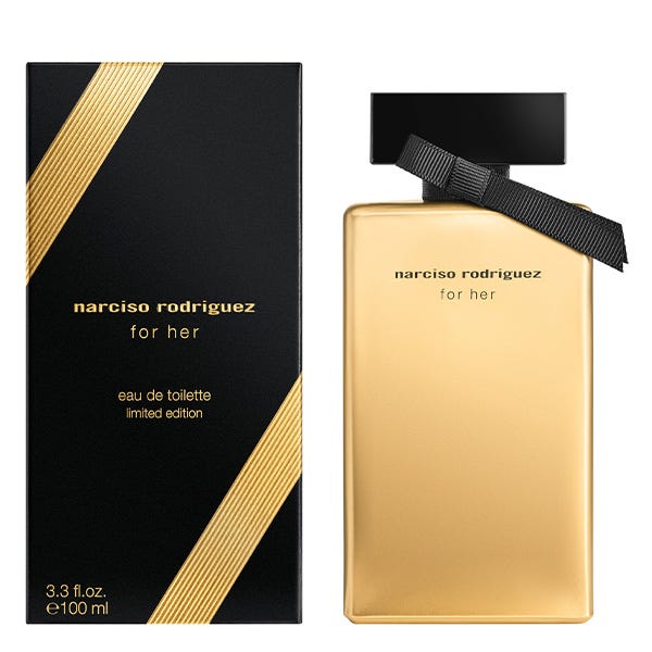 "Esta Navidad, la icónica fragancias for her Eau de Toilette se reinventa con un frasco de edición limitada, laqueado con oro.