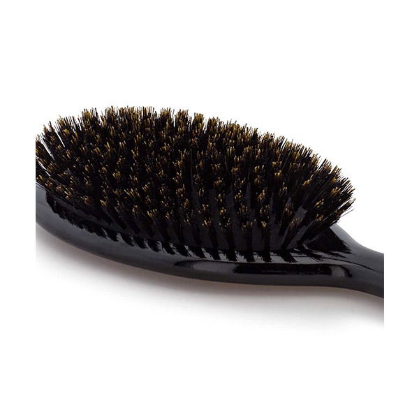 El cepillo de cerdas naturales de jabalí está pensado para pulir el cabello en seco. Empieza siempre cepillando las puntas del cabello. A continuación, con un movimiento en espiral, sube, poco a poco, por los largos y hasta las raíces.