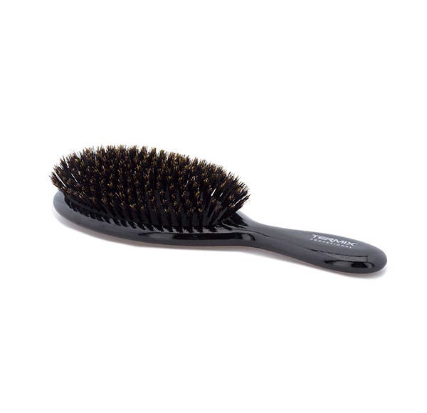 El cepillo de cerdas naturales de Termix te devolverá el brillo habitual al cabello. Con fibras 100% naturales de jabalí, potencia al máximo el brillo natural de la melena y se convierte en un imprescindible para cepillar en seco el cabello diariamente. Una herramienta muy versátil y perfecta para cabellos gruesos y secos, con la que conseguirás un tacto sedoso para tu melena y también podrás desenredar el pelo.