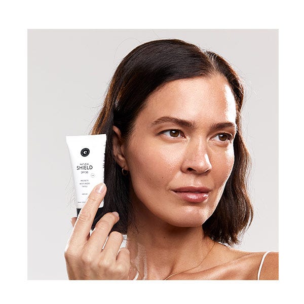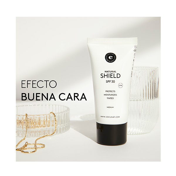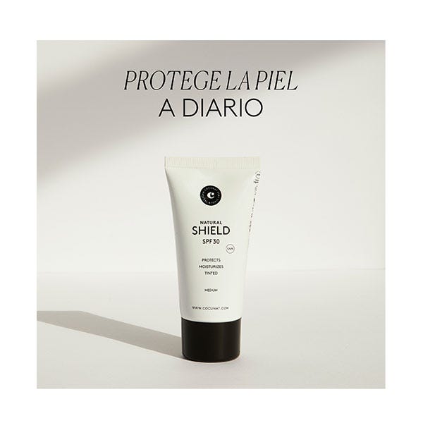 NATURAL SHIELD SPF 30 es el fotoprotector solar 2 en 1 efecto maquillaje con color, perfecto para un uso diario. En un solo gesto, te proporciona protección y efecto buena cara.
