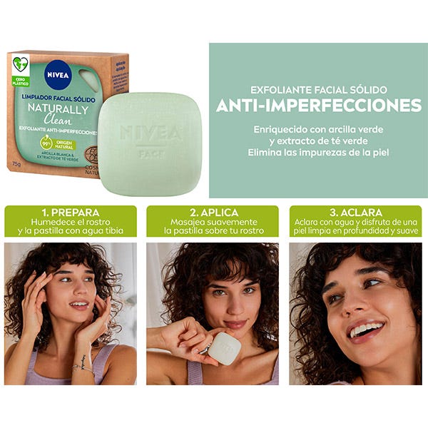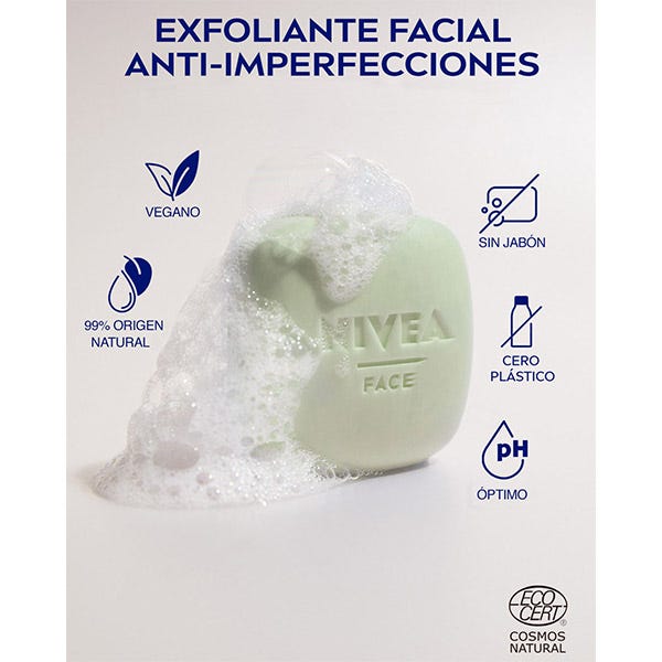 Naturally Clean Exfoliante Anti-Imperfecciones es nuestro primer limpiador facial sólido y certificado.