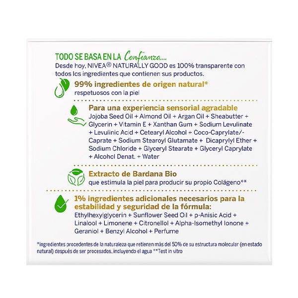 Naturally Good es una crema de día anti-arrugas, con extracto de Bardana BIO, que reduce visiblemente las arrugas y líneas de expresión en tan solo dos semanas, reafirma la piel y la hidrata durante 24 horas.