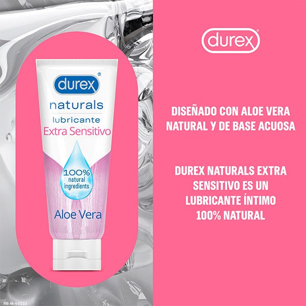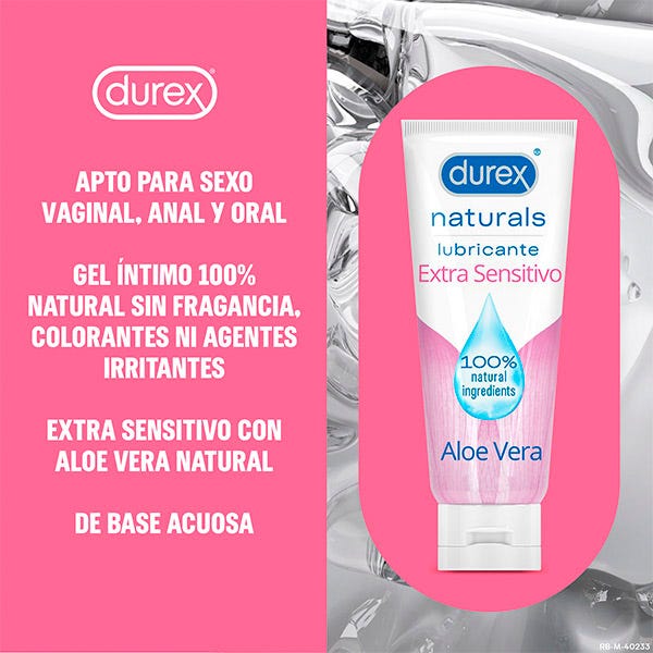 Durex Naturals Extra Sensitivo lubricante es un gel lubricante íntimo 100% natural que alivia la sequedad vaginal. Su fórmula de base acuosa es libre de fragancias y colorantes. Con Aloe Vera natural para sentir un sexo suave de forma natural.