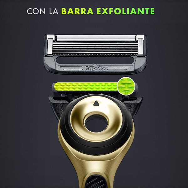 La barra exfoliante situada delante de las hojas ayuda a eliminar los restos que se encuentran antes de las hojas. La crema hidratante para la piel de GilletteLabs cuenta con una fórmula hidratante que ayuda a fortalecer la barrera de hidratación con el paso del tiempo.