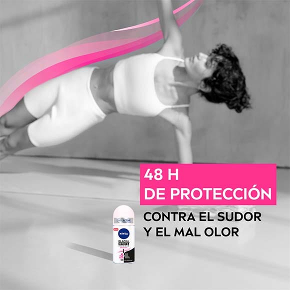 NIVEA Black & White Invisible Original Roll On 50ml: NIVEA Black & White Invisible Original Roll – On garantiza 72h de protección antitranspirante con una sutil fragancia femenina natural con toques orales, vegetales y notas acuática. Su fórmula ha sido desarrollada para potente protección antitranspirante que evita la aparición de manchas blancas en la ropa negra y reduce la aparición de marcas amarillas en tu ropa blanca.