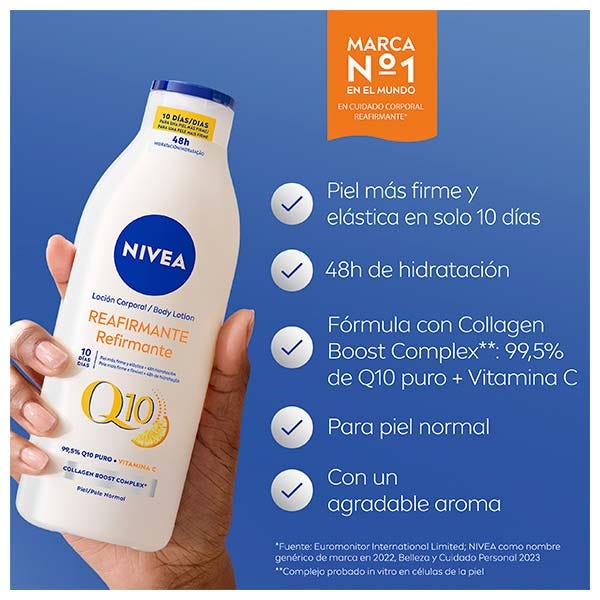 NIVEA Q10 Loción Corporal Reafirmante 400ml: NIVEA Q10 Loción Corporal Reafirmante con Vitamina C reafirma la piel y en 10 días consigue una piel más firme.