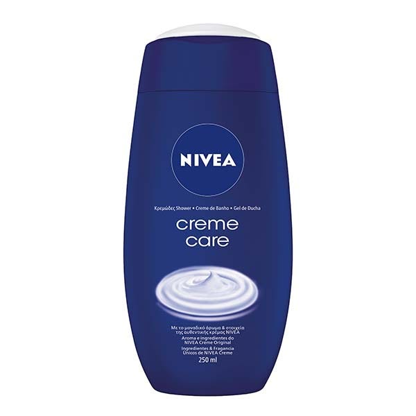NIVEA Creme Care Gel de Ducha 250ml: Aqua, Sodium Laureth Sulfate, Cocamidopropyl Betaine, Coco-Glucoside, Prunus Amygdalus Dulcis Oil, Vitis Vinifera Seed Oil, Sodium Ascorbyl Phosphate, Tocopherol, Glycerin, Glycol Distearate, Citric Acid, Sodium Chloride, Hydrogenated Castor Oil, Sodium Benzoate, Benzoic Acid, Linalool, Geraniol, Benzyl Alcohol, Citronellol, Limonene, Parfum.