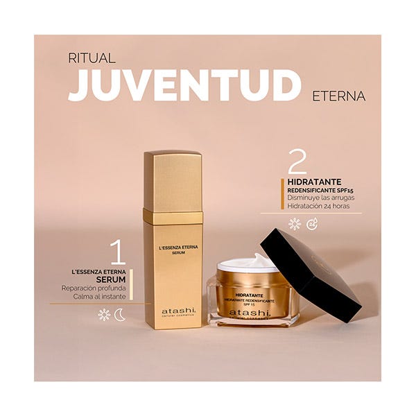 Sérum L'Essenza Eterna 30ml + Crema hidratante redensificante SPF15 50ml + Neceser.