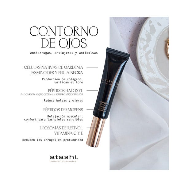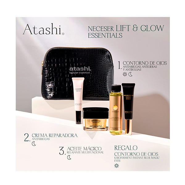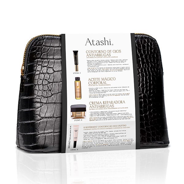 Atashi neceser para un ritual antiarrugas, reparador e hidratante. Corrige arrugas profundas, bolsas, ojeras y combate líneas de expresión. Beneficios Destacados: