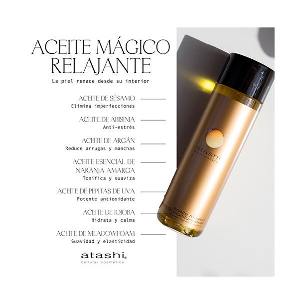 ACEITE MÁGICO CORPORAL: Por las noches extendiéndola desde el interior del rostro hacia fuera.