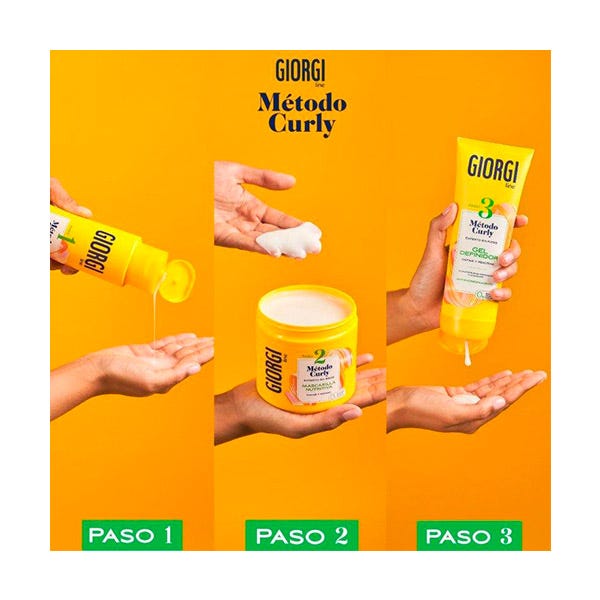 Neceser con los 3 pasos imprescindibles del Método Curly de Giorgi: champú suave, mascarilla nutritiva y gel definidor. Una innovadora rutina parta el cabello rizado y ondulado que consiste en aportar la máxima nutrición para evitar el encrespamiento y conseguir así unos rizos más definidos, elásticos y sanos de manera natural y sin ingredientes perjudiciales para el cabello. Con resultados visibles desde la primera aplicación.