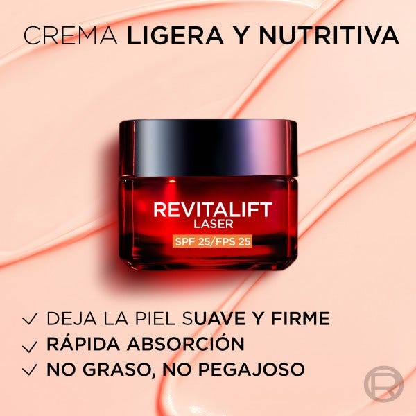 Disfruta de una piel más firme, luminosa y uniforme con la Crema de Día L’Oréal Paris Revitalift Láser Triple Acción SPF 25. Formulada con una potente combinación de Pro-Retinol, que estimula la renovación celular y suaviza arrugas; Ácido Hialurónico, que hidrata intensamente y aporta elasticidad; y Vitamina Cg, reconocida por su acción Iluminadora y correctora de manchas. Su textura fina y sedosa se absorbe rápidamente, dejando un acabado no graso y confortable.