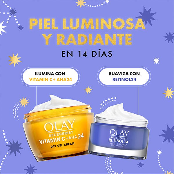 Por la mañana, usa la crema de día Olay Regenerist Vitamin C + AHA 24 que proporciona una piel más luminosa en solo 1 día y un tono y textura visiblemente más uniformes.