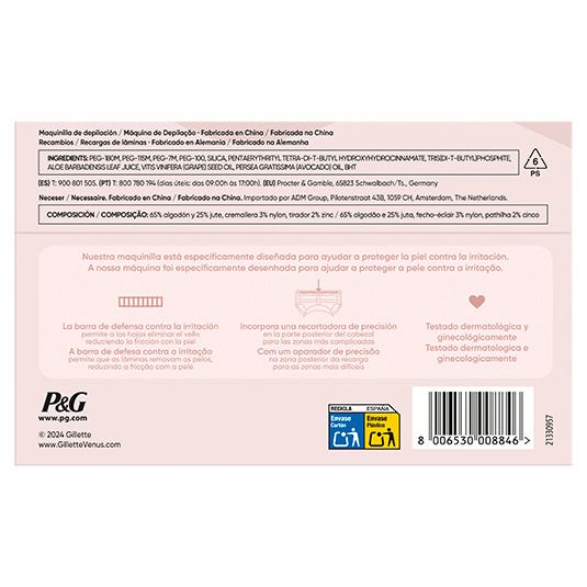 No necesitas gel de depilación, está incorporado, y la tecnología lubricante SkinCushion ayuda a proteger tu piel de la irritación. Además, esta maquinilla de 3 hojas proporciona hasta 30 días de depilación suave.
