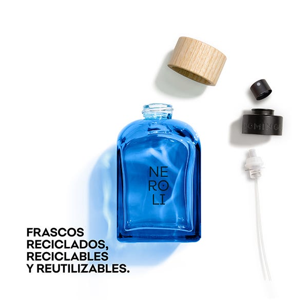 Hecho con vidrio reciclado, reciclable y reutilizable de por vida, gracias al nuevo sistema de rosca. Nuestro tapón es 100% de madera FSC y 0% plástico. Etiqueta de papel FSC procedente de bosques bien gestionados. Un diseño atemporal y único para toda la colección hecho en España.