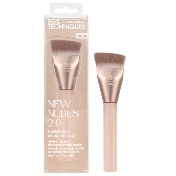 La brocha para base New Nudes 2.0 H-Diamond de Real Techniques presenta un cabezal denso y angular en forma de diamante para aplicar y difuminar fácilmente el maquillaje. Esta colección de edición limitada regresa mejor que nunca, porque los tonos nude nunca pasan de moda.