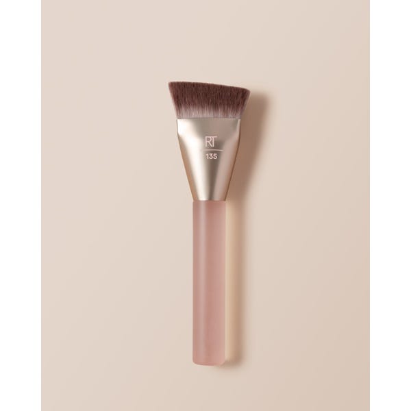 Aplica base, rubor o contorno aplicando el maquillaje sobre el rostro con el borde plano para distribuir el producto uniformemente. Usa el borde puntiagudo para definir y esculpir.