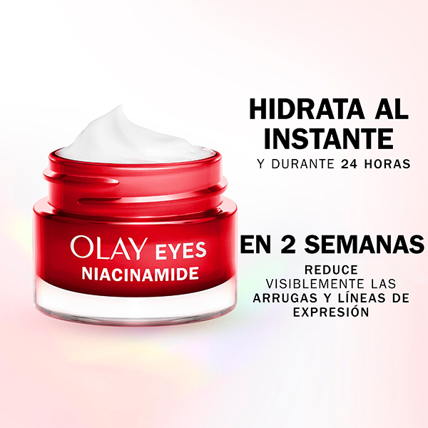 Diseñada especialmente para la delicada zona del contorno de ojos, la potente Niacinamida 24 + Vitamina E de Olay, sin perfume y testada clínicamente, proporciona hidratación todo el día.