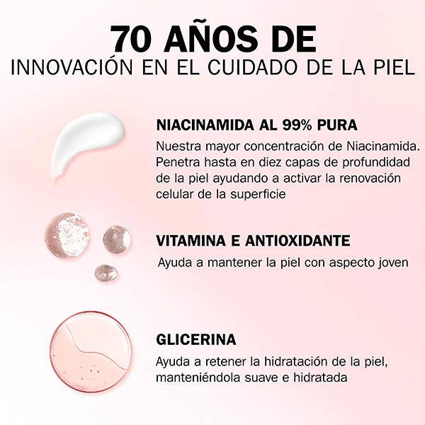 ¿Cómo? Esta fórmula de Olay contiene la mayor concentración de Niacinamida pura al 99%, capaz de penetrar hasta 10 capas de profundidad para ayudar a activar la renovación celular superficial.
