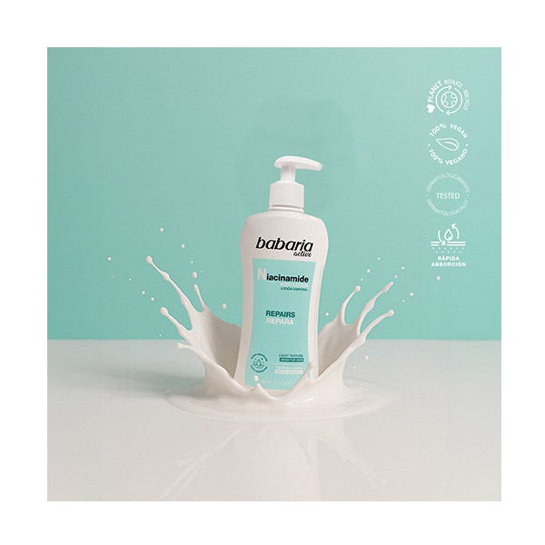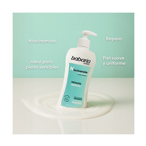 Loción Corporal Niacinamida es una fórmula pensada para ofrecer hidratación intensa y duradera mientras cuida la piel sensible. Combina el poder de la niacinamida o vitamina B3 con una textura ligera de rápida absorción, ideal para el uso diario. Esta loción corporal está diseñada para fortalecer la barrera cutánea y contribuir a un tono más uniforme y equilibrado.