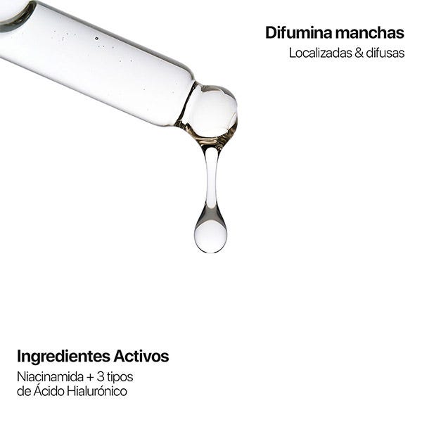 Formulado con Niacinamida [Pro] y 3 tipos de Ácido Hialurónico, trabaja para mejorar la calidad de la piel, unificar el tono, reducir las manchas e hidratar intensamente.