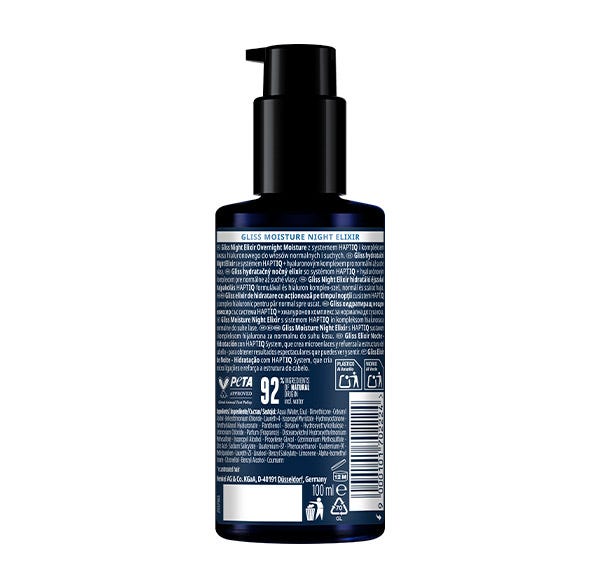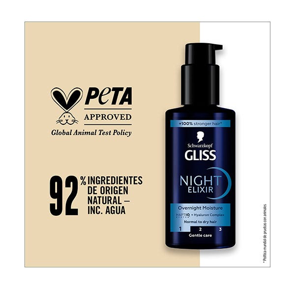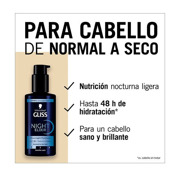 Especialmente diseñado para cabello seco, Night Elixir Hidratación contiene HaptIQ System + Complejo Hialurónico, que crea microenlaces y fortalece la estructura del cabello. Consigue un cabello sano y brillante, hasta 48 horas de cabello hidratado después de una sola aplicación.