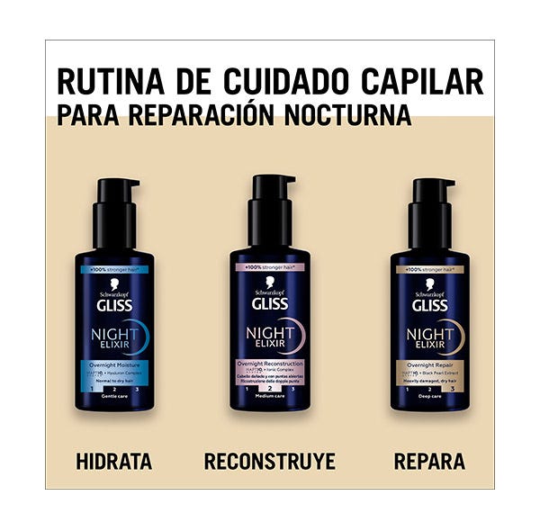 Experimenta los resultados de una reconstrucción capilar nocturna con Night Elixir Aqua revive Hidratación.