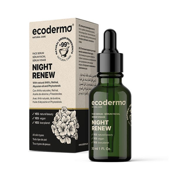 Sérum facial renovación intensa con AHAs naturales, Retinal, Aceite de abisinia y Fitoesteroles y textura suave y sedosa, ayuda a nutrir y renovar la piel durante la noche para que luzca suave y radiante por la mañana.