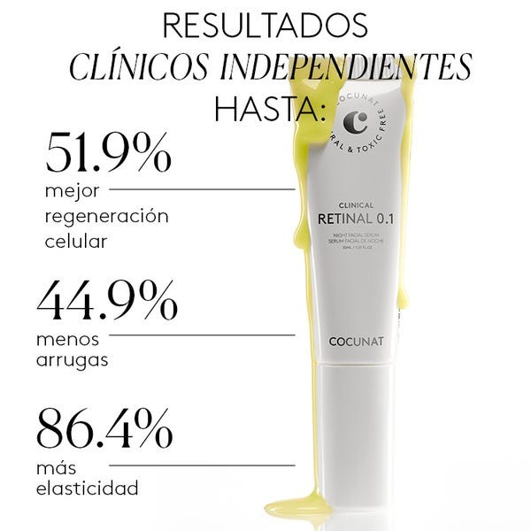 Potencia tu rutina nocturna con el renovador celular de Retinal al 0,1%. Gracias a su sistema SMART DELIVERY TECNOLOGY, multiplica su eficacia siendo 11 veces más rápido y 3 veces más potente que el Retinol. Con Niacinamida y Ácido Hialurónico hidrata, atenúa arrugas y manchas, estimula el colágeno y transforma la piel en radiante y tersa.