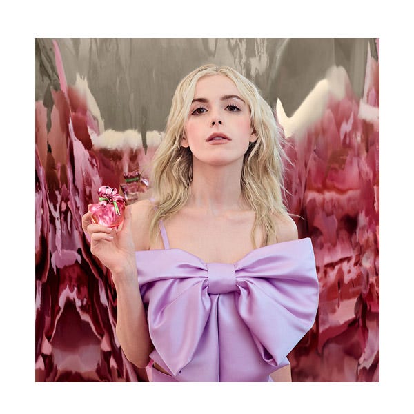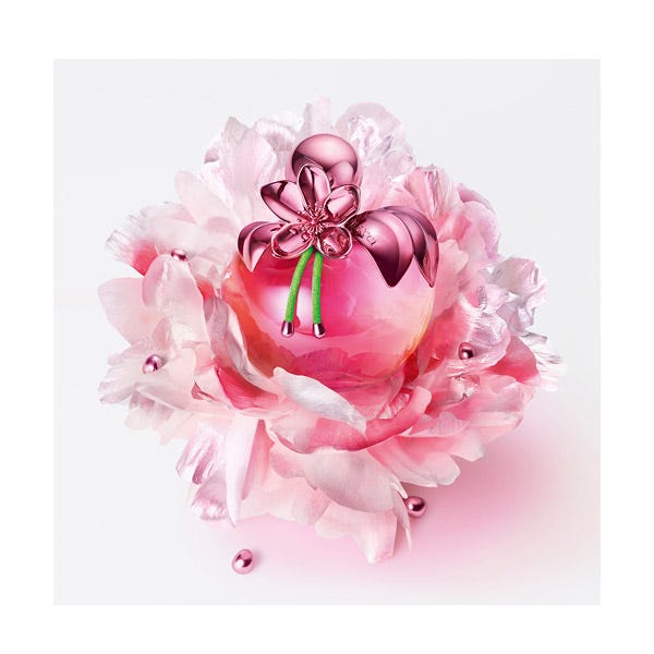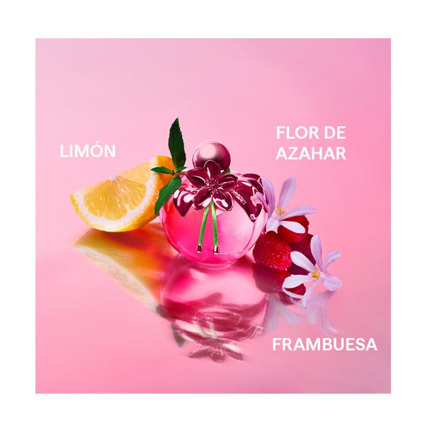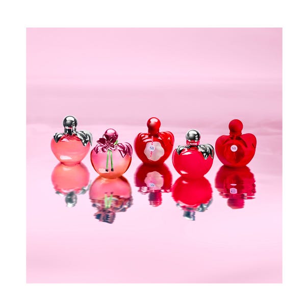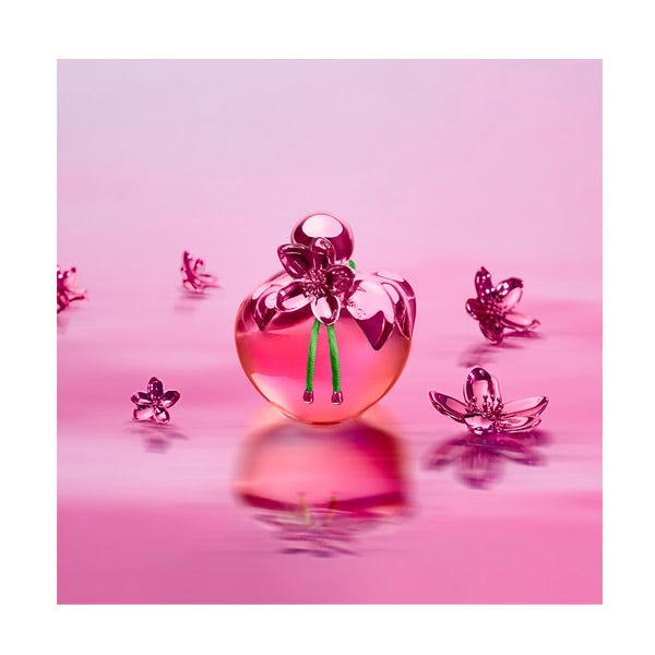 El icónico frasco del perfume con forma de manzana de Nina se viste de rosa metalizado, adornado con una joya a juego en forma de flor que puede llevarse como un precioso accesorio. El estuche es una delicia para la vista, con una fascinante ilustración y un mensaje secreto oculto en su interior.