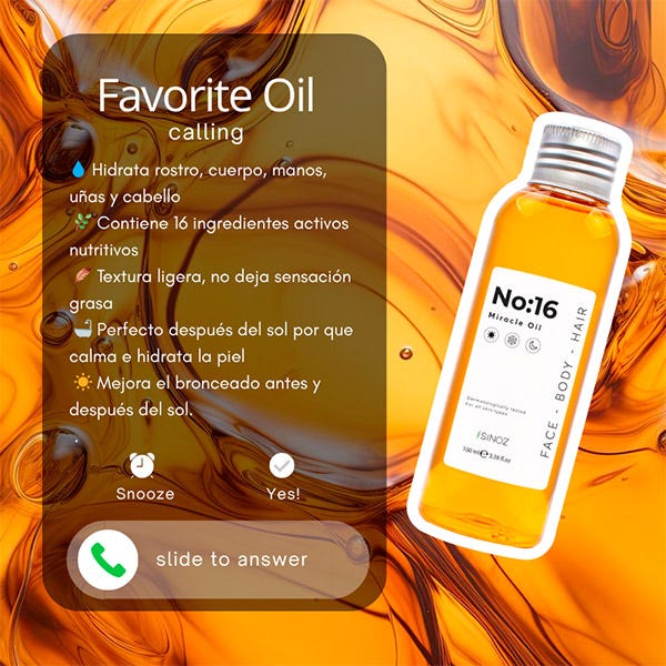El Nº:16 Miracle Oil de Sinoz es un aceite rejuvenecedor de fórmula ligera que combina 16 aceites naturales y esenciales para proporcionar hidratación intensa, nutrición profunda y un efecto glow inmediato.