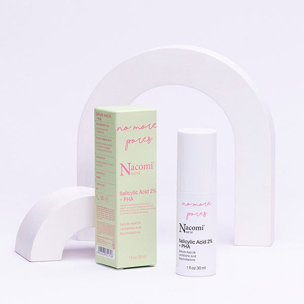 Ácido salicílico 2% + PHA - Este producto reduce eficazmente los puntos negros y ayuda a combatir el acné, desbloquea los poros, exfolia la capa superficial de la piel y reduce la producción excesiva de sebo. Su fórmula enriquecida con niacinamida acelera la regeneración, suaviza la piel y mejora su tono. Gracias a los ácidos PHA, también actúa contra las arrugas y retrasa los procesos de envejecimiento.