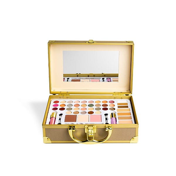 Este maletín contiene sombras, labiales, coloretes, brochas ¡y mucho más! Tan compacto para poder llevar contigo a donde lo necesites, se transformará en un imprescindible para tus ocasiones más especiales.