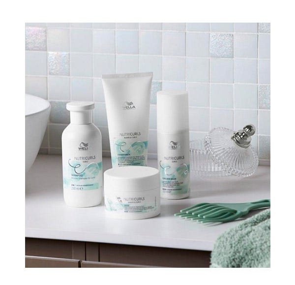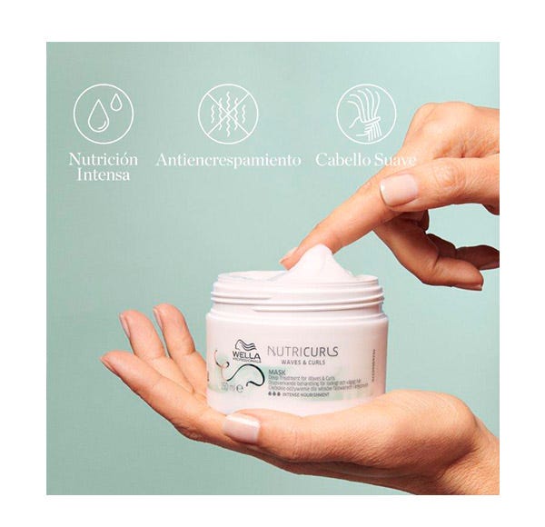 La mascarilla nutritiva Nutricurls de Wella Professionals ayuda a prevenir el encrespamiento de rizos y ondas delicados.