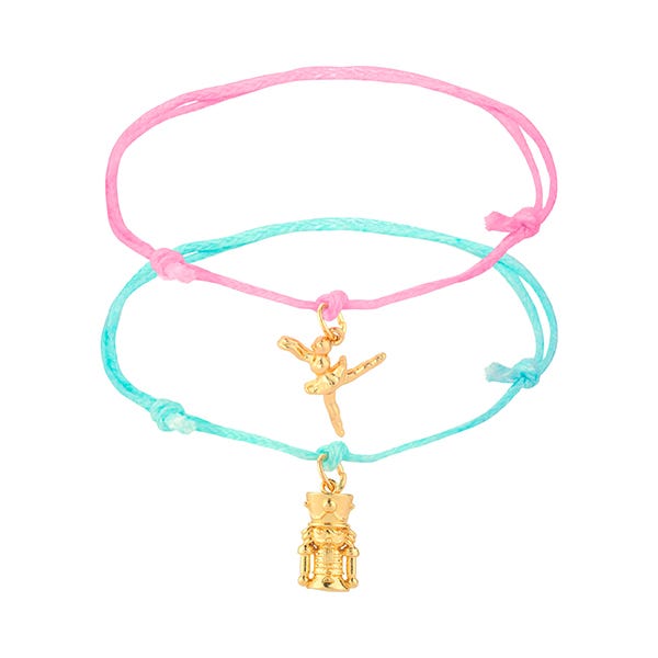 Celebra las fiestas con estilo con el dúo de pulseras NUTS ABOUT YOU The Last Dance. Este adorable conjunto incluye dos pulseras de cordón ajustables en suave menta y rosa palo, cada una adornada con un delicado charm dorado metalizado. Una pulsera incluye un detallado colgante de cascanueces, mientras que la otra muestra una elegante bailarina. Estos adorables accesorios, que se pueden llevar juntos o por separado, añaden un toque divertido y festivo a cualquier conjunto, perfecto para compartirlos con un amigo o guardarlos para ti.