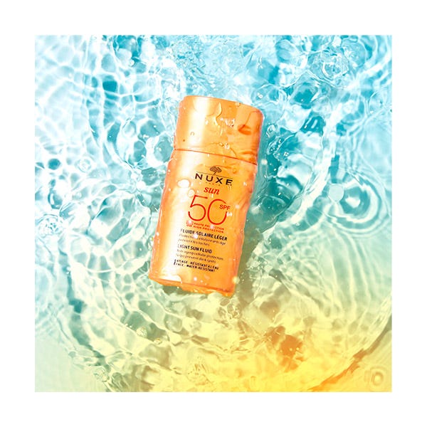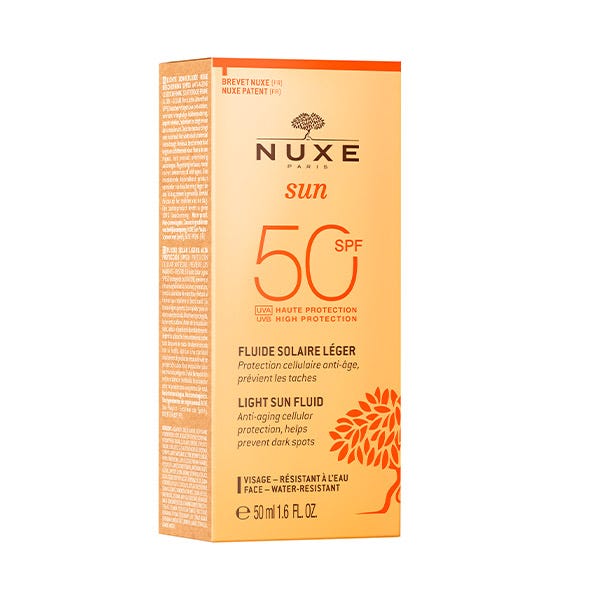 - Este Fluido Ligero Alta Protección SPF50 NUXE Sun protege la piel de los rayos del sol y previene el fotoenvejecimiento celular.