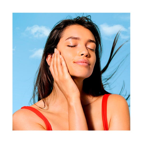 - Enriquecido con extracto de Lirio Acuático, su fórmula resistente al agua refuerza la barrera cutánea para preservarla de la deshidratación y sublima el bronceado.