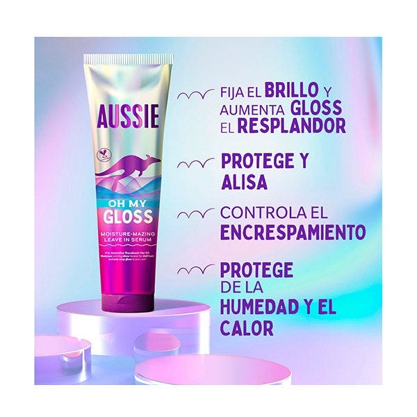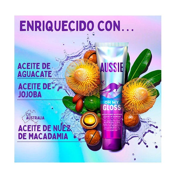 Hemos embotellado un verdadero milagro en el sérum sin aclarado Aussie Oh My Gloss Moisture-Mazing. Enriquecido con aceite de nuez de macadamia de Australia, aceite de jojoba y aceite de flor de sierra, nuestro sérum ligero sella el brillo y potencia el resplandor al instante. Es increíble para proteger y alisar el pelo, domar el encrespamiento, ayudar a prevenir la pérdida de humedad y protegerlo contra la humedad y el calor. ¡Sí, todo eso! Con solo 1 uso, transformará tu pelo de seco y apagado a suave y deslumbrante sin apelmazar. Si eso no es hidratación increíble, no sabemos qué lo es. Además, es vegano* y Cruelty Free. Para un brillo aún mayor, úsalo con nuestro sérum Oh My Gloss para un pelo que brilla como las olas del océano australiano.