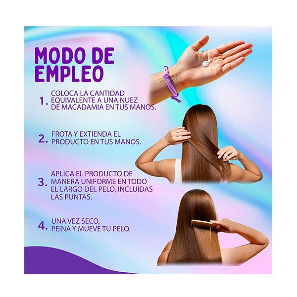 1. Sérum sin aclarado como último paso en tu rutina de lavado para un efecto antiencrespamiento y superbrillante. 2. Sérum sin aclarado como potenciador del brillo los días que no te laves el pelo para devolverle ese brillo radiante.