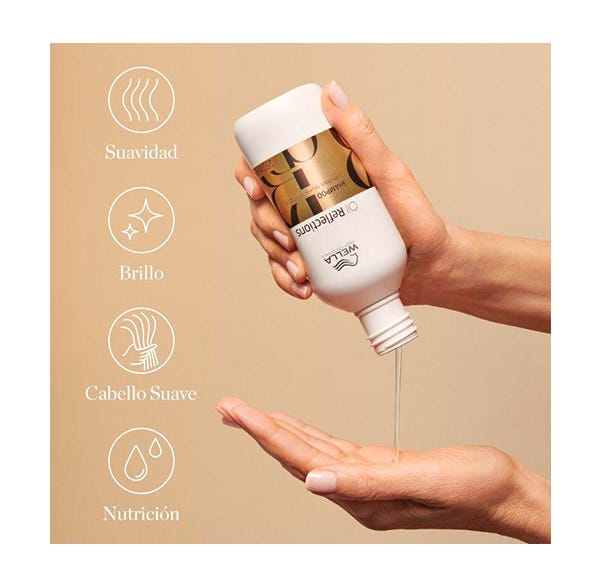 La ligera fórmula del champú Oil Reflections proporciona al cabello un excelente brillo.