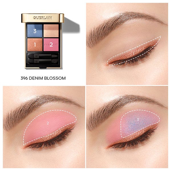 Reinventada en una armonía única, fresca y luminosa, Ombres G Denim Blossom contiene una paleta de luminosidad y brillo para transformar la mirada hasta el infinito y crear looks cautivadores tanto para el día como para la noche.