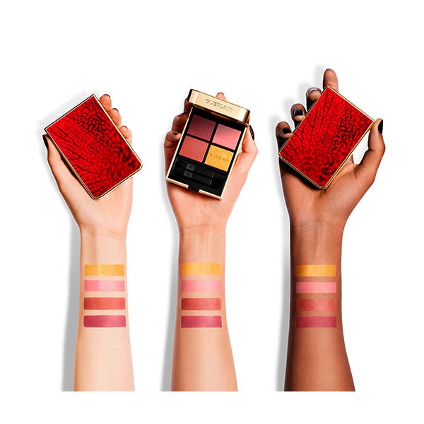 "Me encanta el rosa de esta paleta, es un rosa fresco que aporta luminosidad. La sombra dorada ofrece una mirada resplandeciente y realza los otros tonos. Y el burdeos es un tono fuerte, potente, que atempera el rojo cobrizo, sumamente elegante".