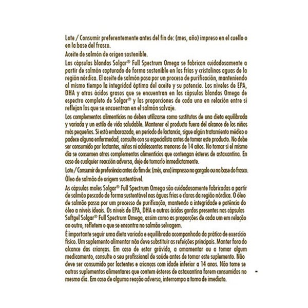Además, Solgar - Full Spectrum Omega Salmon Oil® contiene astaxantina y vitamina D3, vitamina que contribuye al funcionamiento de nuestro sistema inmunitario y ayuda a mantener fuertes nuestros huesos y músculos.