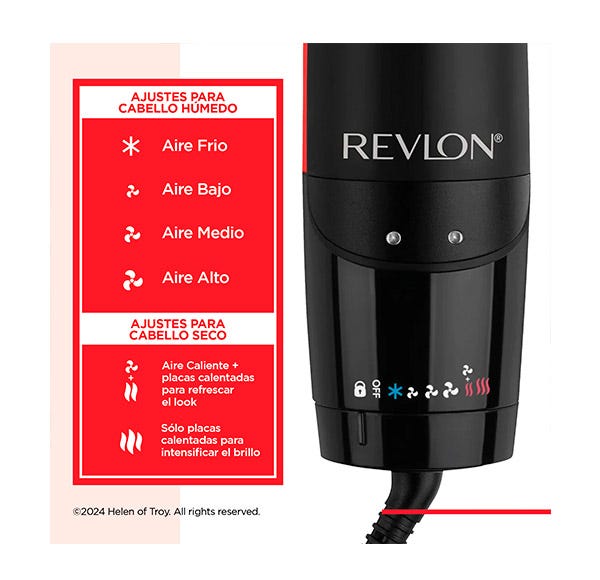 4 Ajustes de temperatura y dos ajustes para cabello seco.