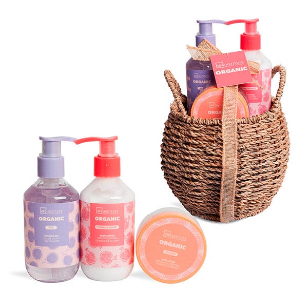 Este set de baño de aceites naturales tiene una cantidad de propiedades diferentes dependiendo de tus necesidades. En este caso esta cesta incluye un gel de baño calmante, una crema corporal y un exfoliante corporal.
