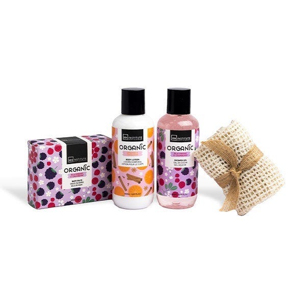 Nuestro set Organic ofrece una experiencia de spa en casa. Incluye gel de ducha y loción corporal, sales de baño de y una toalla de sisal. Disfruta del cautivador aroma de naranja, canela, mora y arándano mientras nutres y revitalizas tu piel. Un lujo relajante en tu rutina diaria