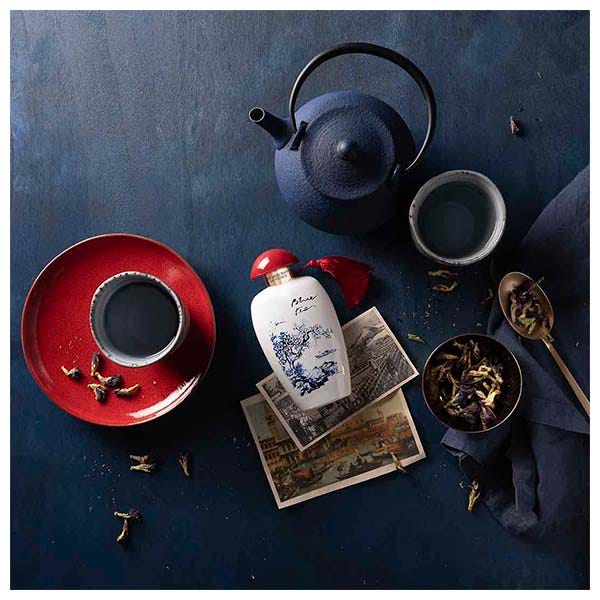 Blue Tea está inspirada en las fragancias y materiales más preciados de las tradiciones asiáticas y sitúa en el centro de la composición el té azul, un té chino muy apreciado, también conocido como flores de guisante mariposa de BlueChai, perteneciente a la especie Oolong.
