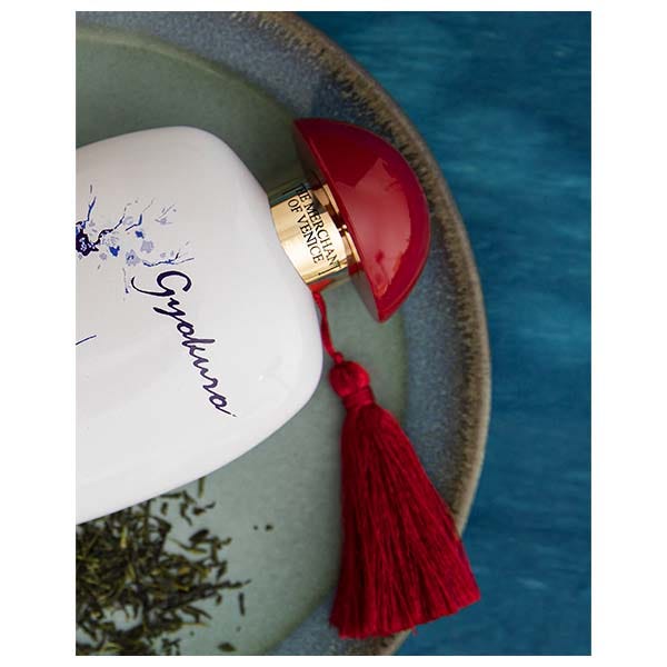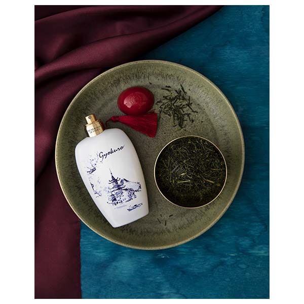 Gyokuro es una fragancia que rinde homenaje a la Tierra del Sol Naciente, exaltando la materia prima homónima, el más preciado de los tés verdes japoneses.