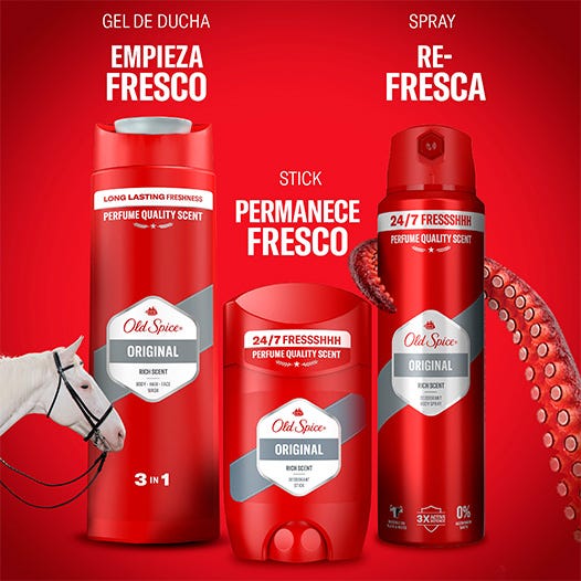 El gel de baño Original convierte tu ducha o baño diario en una experiencia extraordinaria que esperarás con ganas durante todo el día. El producto de ducha Old Spice Original perfumará tu piel con una fantástica fragancia que deleitará tus sentidos
